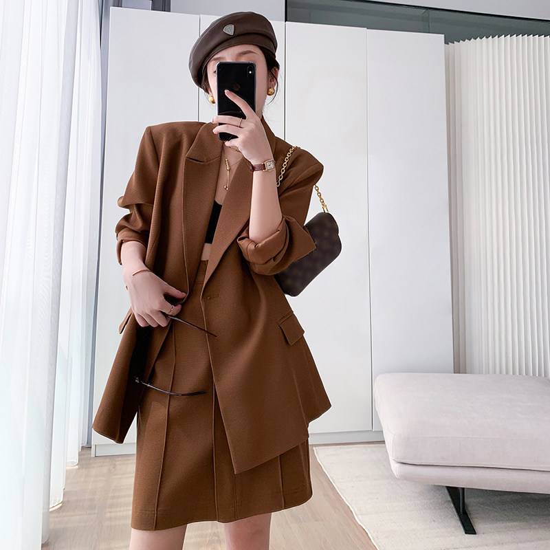 懂点焦糖收腰西装外套女2026春季新款韩版时尚气质包臀裙两件套装
