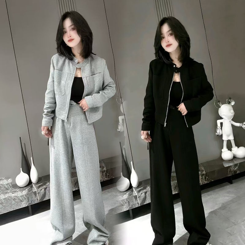 休闲时尚套装女2026春季新款短款外套休闲裤韩版简约减龄两件套潮