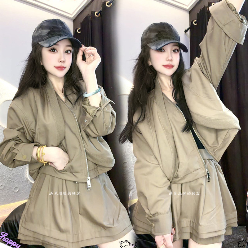 时尚套装女2026春季新款韩版洋气棒球服宽松外套高腰半身裙两件套