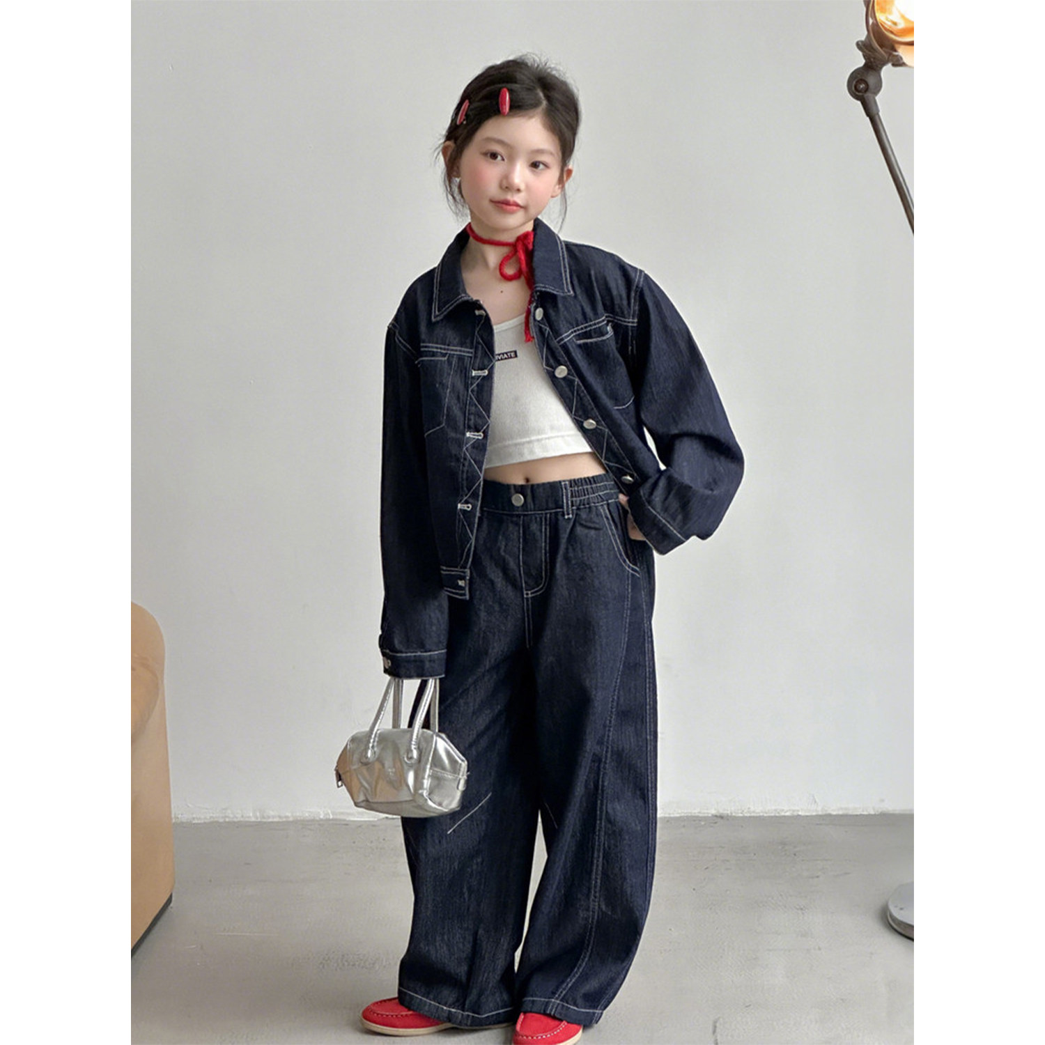 女童韩版时尚牛仔套装2026新款儿童春季休闲宽松外套阔腿裤两件套