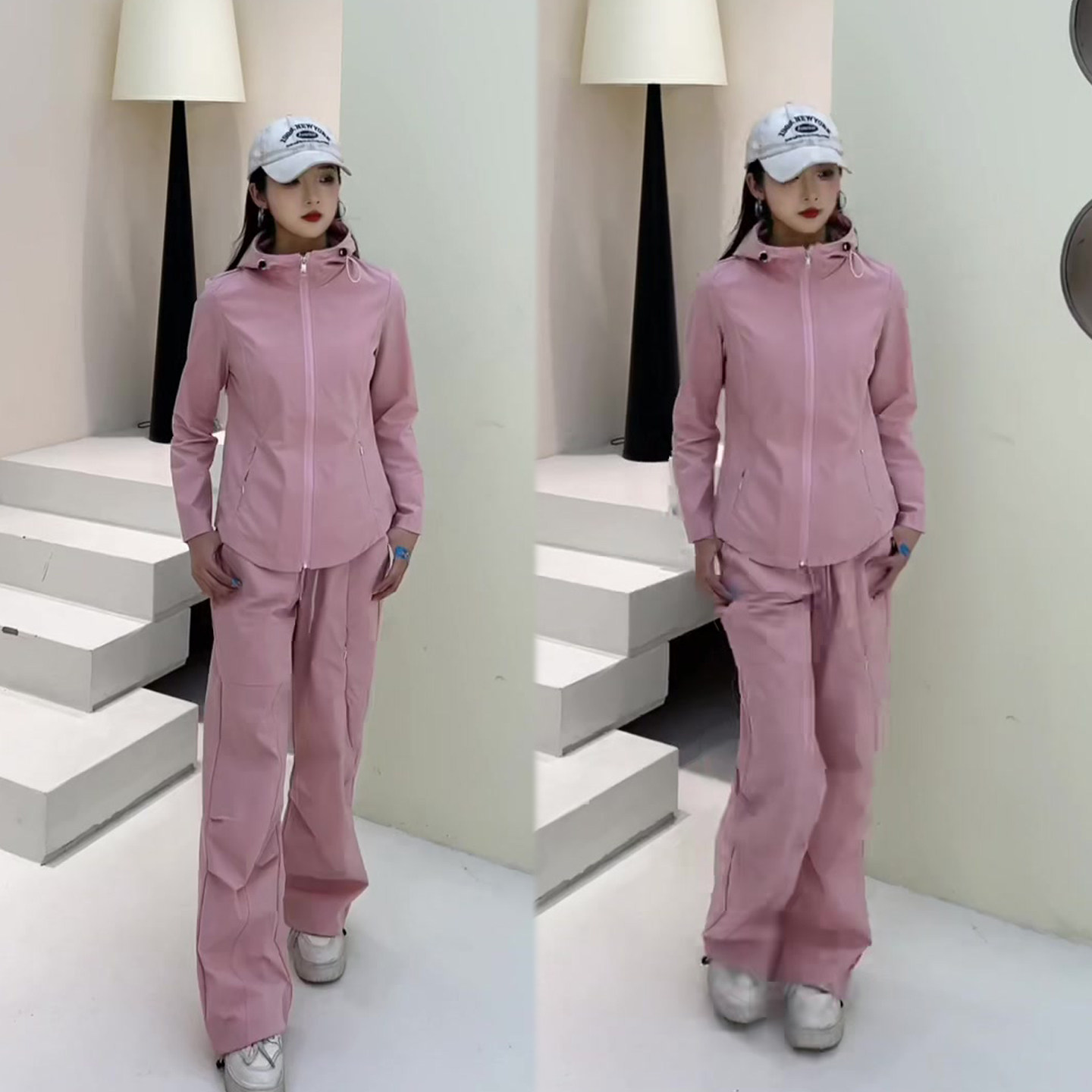 春季薄款时尚套装女2026连帽收腰冲锋衣+长裤休闲韩版洋气两件套