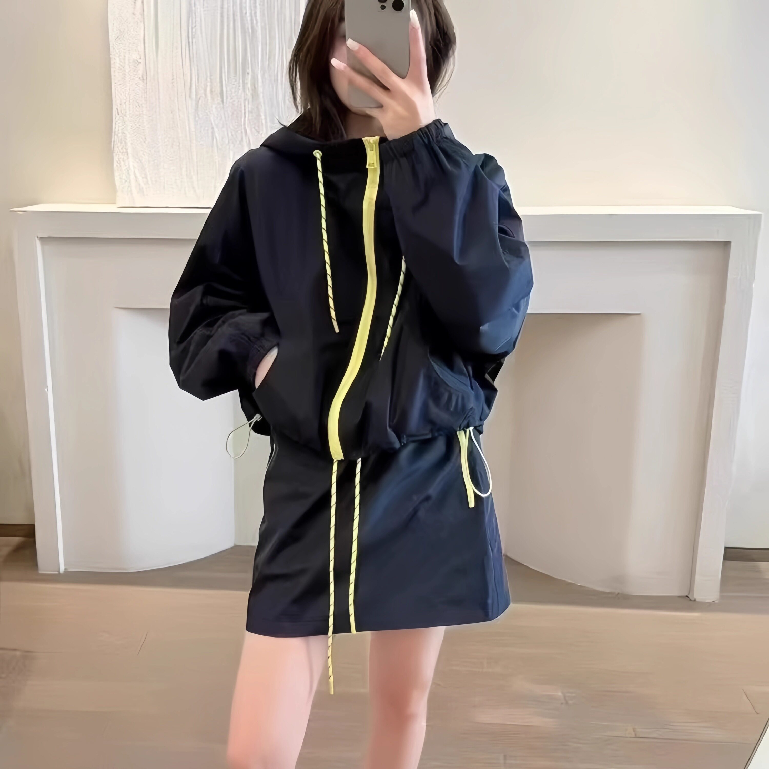 韩版休闲时尚套装女2025春季新款宽松连帽冲锋衣外套半身裙两件套