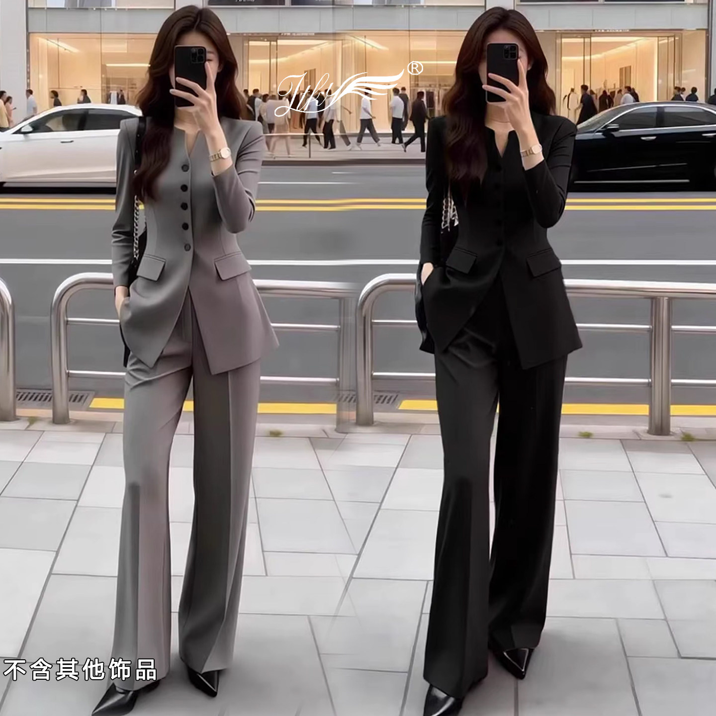 欧货气质休闲时尚套装女2025春季韩版设计感显瘦上衣+裤子两件套