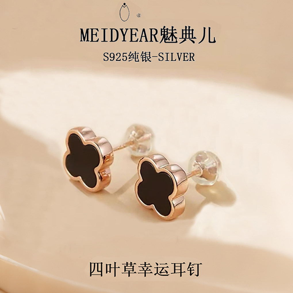 - 四叶草纯银耳钉女925银