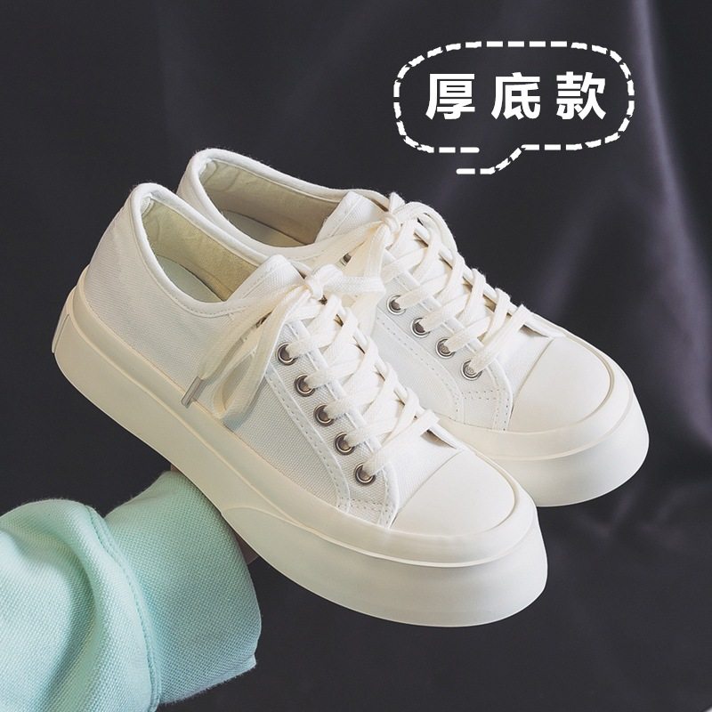 纯白色帆布鞋女增高厚底小白鞋2025新款女鞋ulzzang百搭低帮女鞋