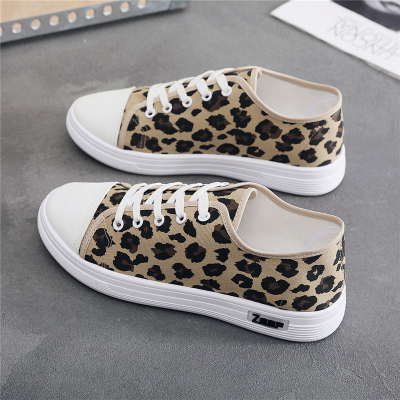 ins潮帆布女鞋学生百搭ulzzang春季2025新款布鞋透气豹纹板鞋秋款