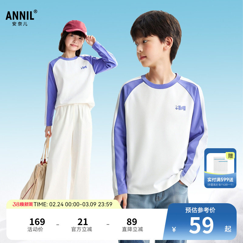 【透气全棉T】安奈儿童装男童女童圆领插肩袖长袖T恤2026春新款