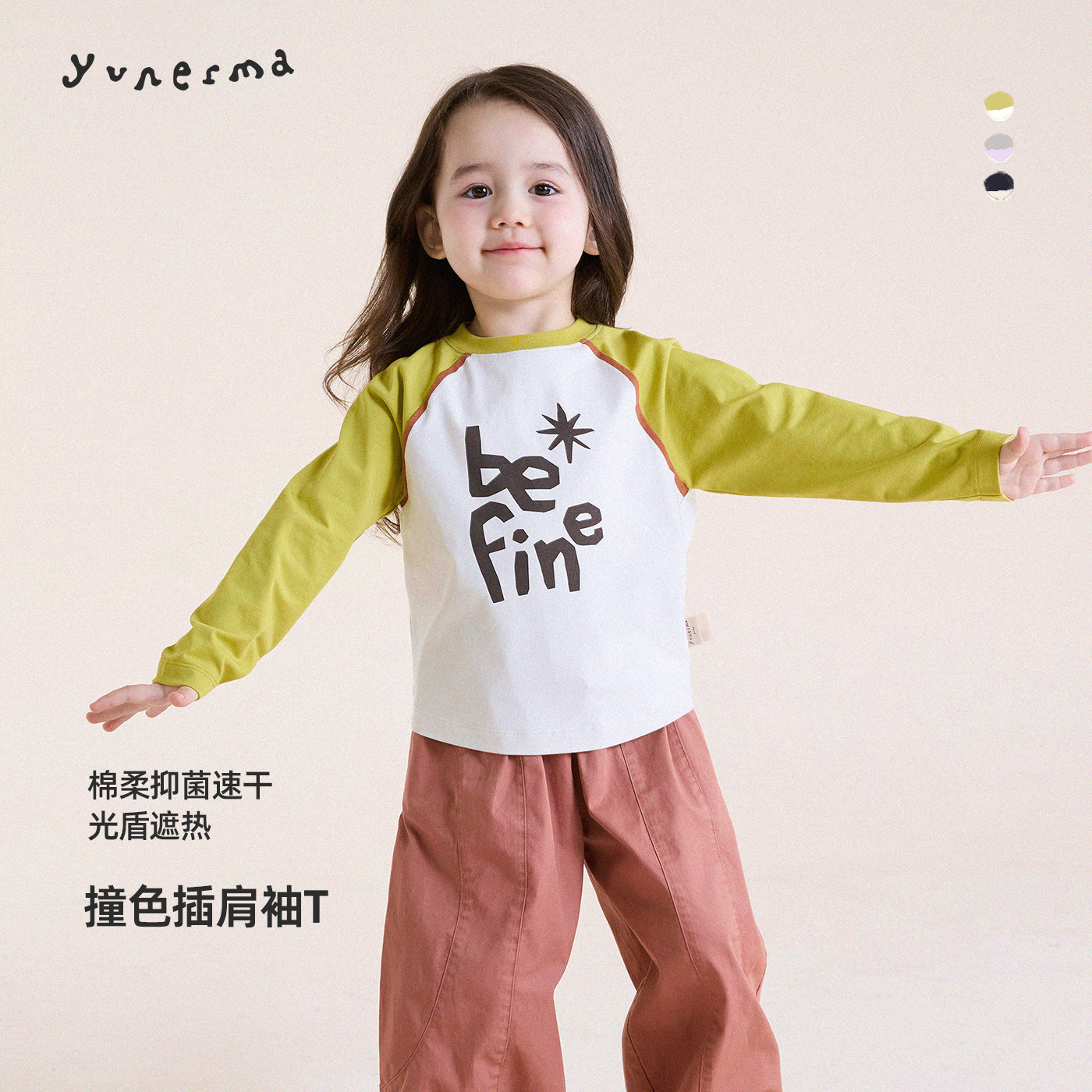 【记忆棉弹弹T】安奈儿女童装圆领插肩袖长袖T恤2026春新款打底衫