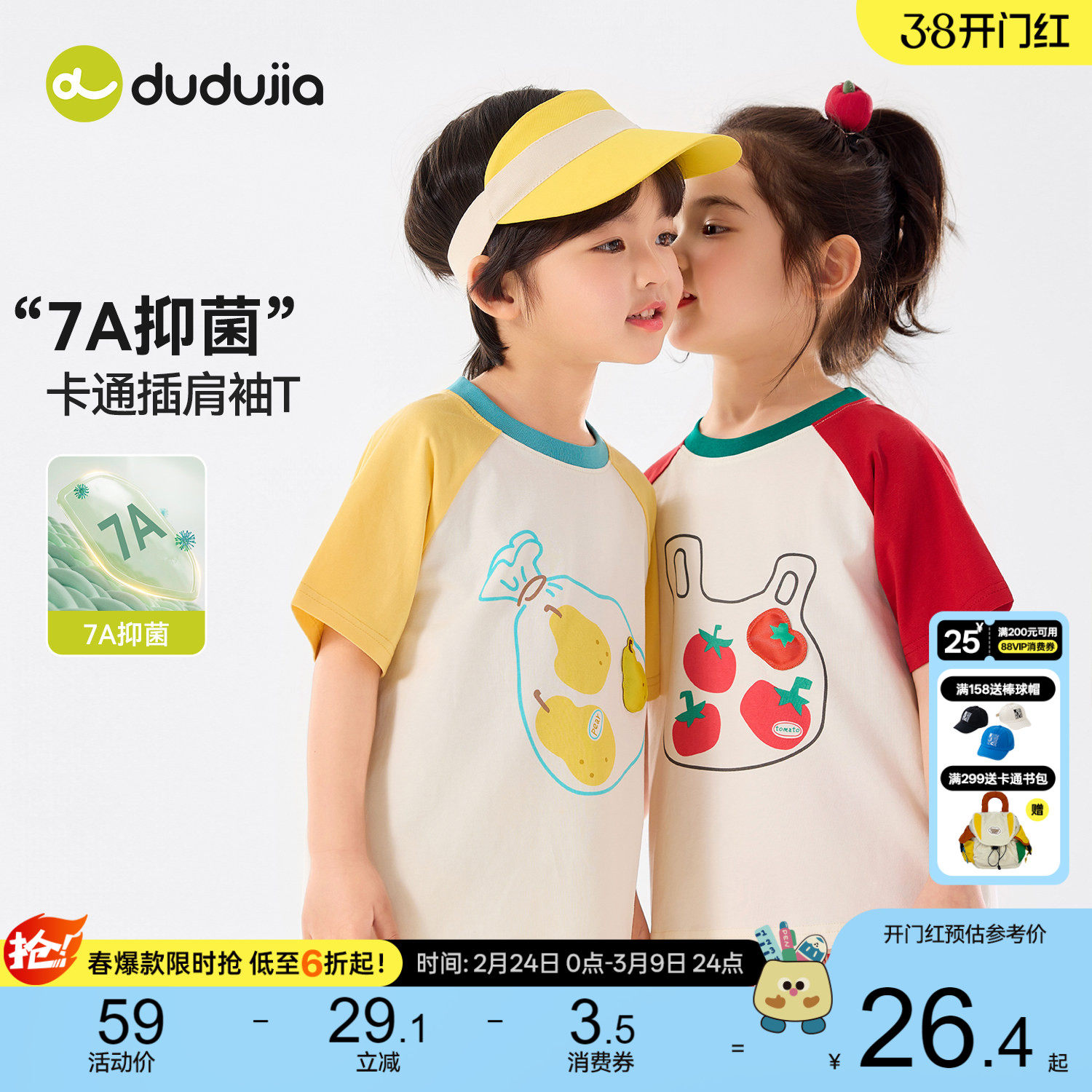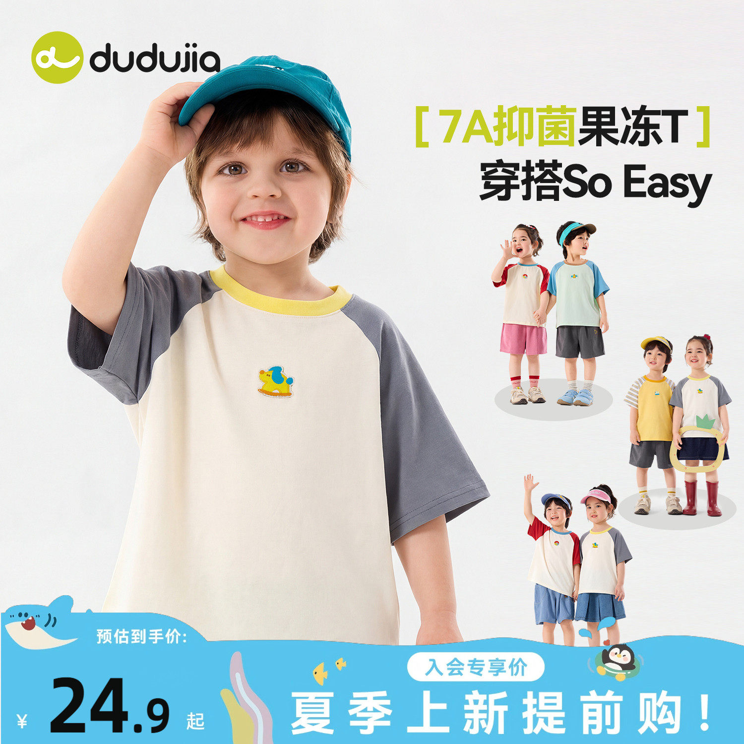 【7A抑菌】嘟嘟家儿童T恤夏新款男童短袖女童插肩袖上衣宝宝衣服