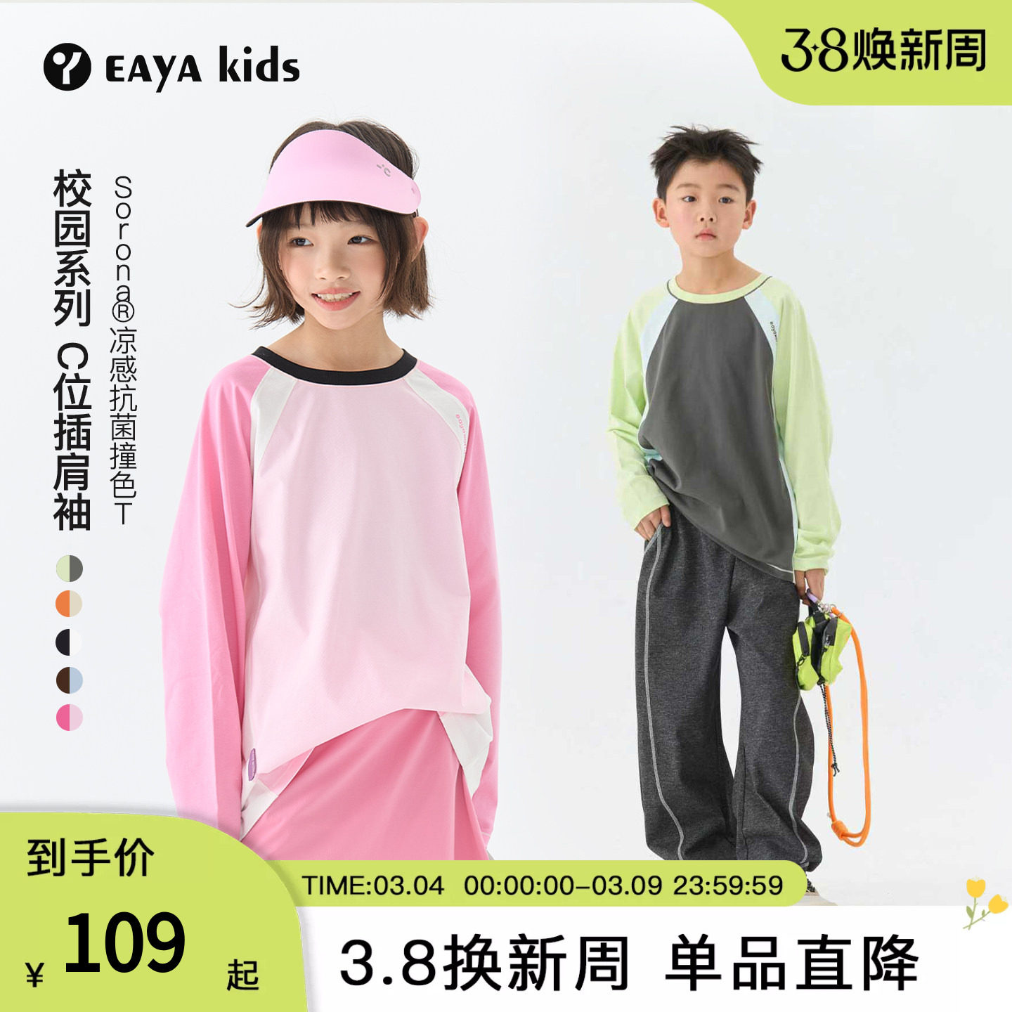 Eayakids儿童春男女童早春长袖儿童T恤插肩袖中大童套头撞色圆领t
