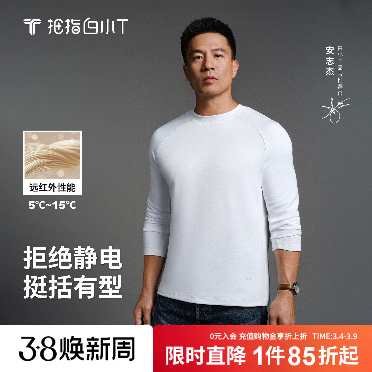 【安志杰同款】白小T热特姆男女长袖T恤插肩袖保暖抗静电打底衫