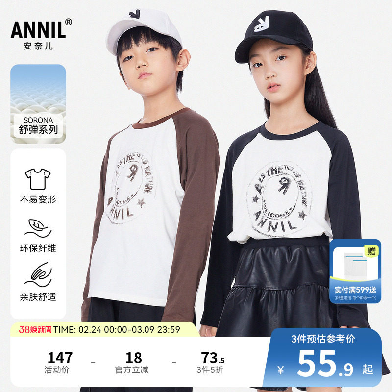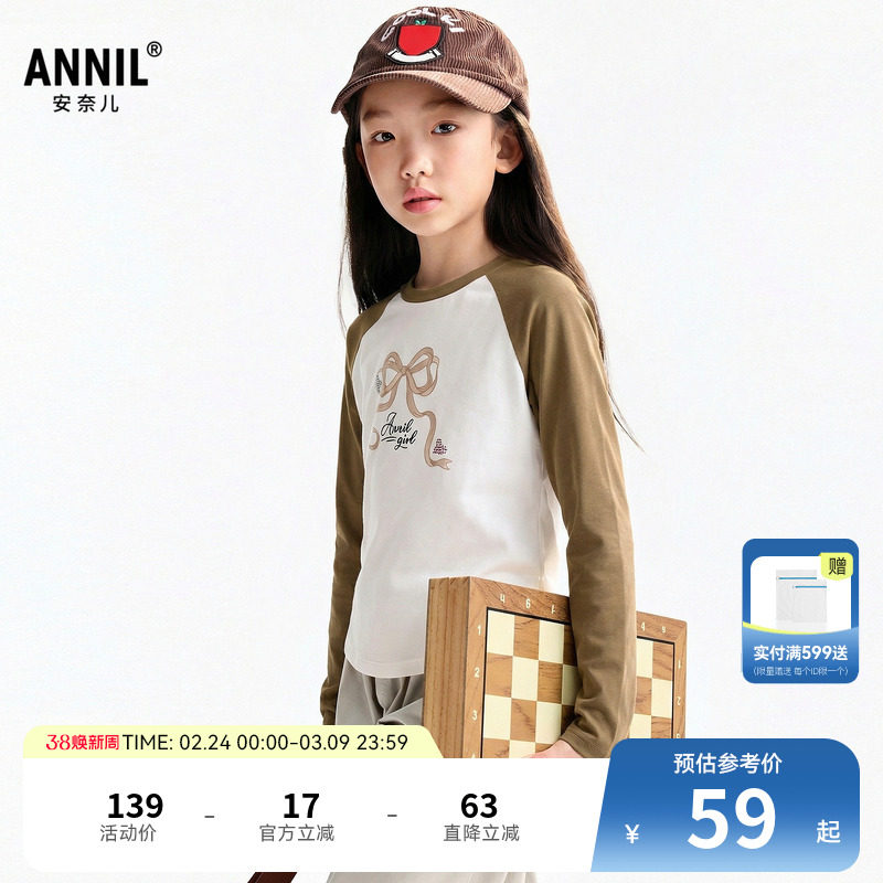 【短款插肩袖】安奈儿童装女童圆领长袖T恤2026春新款休闲纯棉