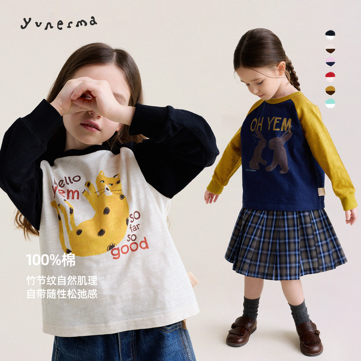 儿童春季新款卡通插肩袖长袖允儿妈女童2026时尚纯棉T恤女孩上衣