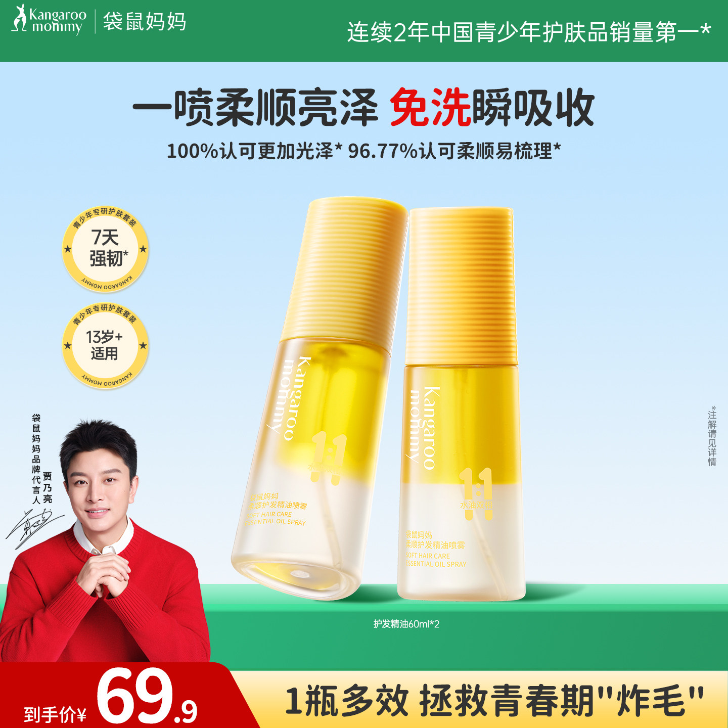 袋鼠妈妈青少年护发精油男女防毛躁头发柔顺修复护理不易粘腻护发