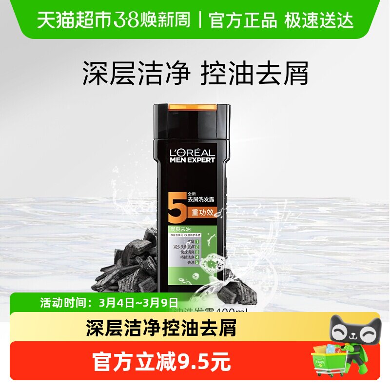 欧莱雅男士炭爽洗发水去屑止痒控油无硅油洗发露男士专用官方正品