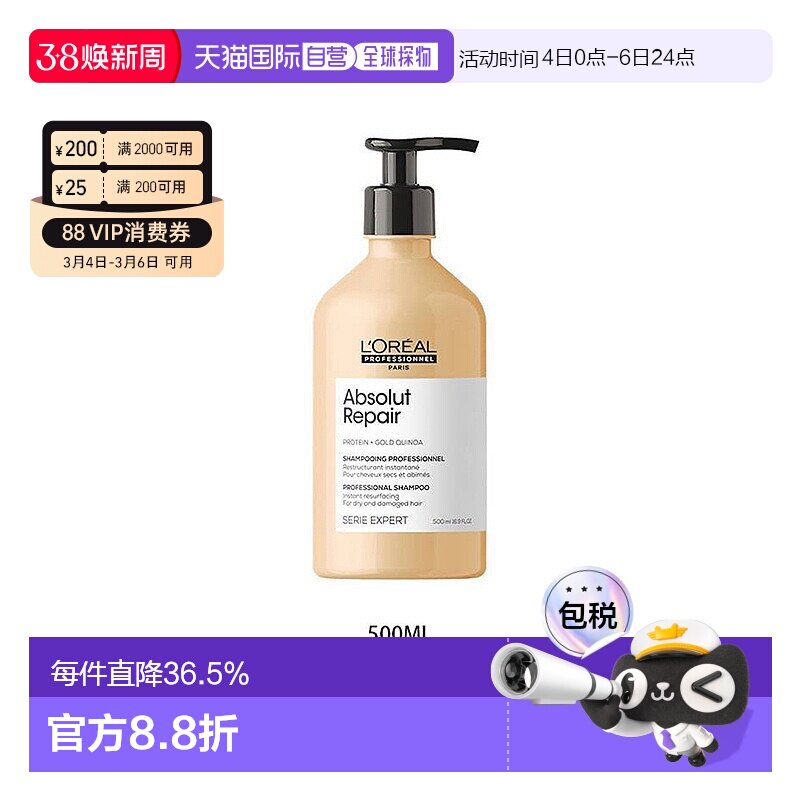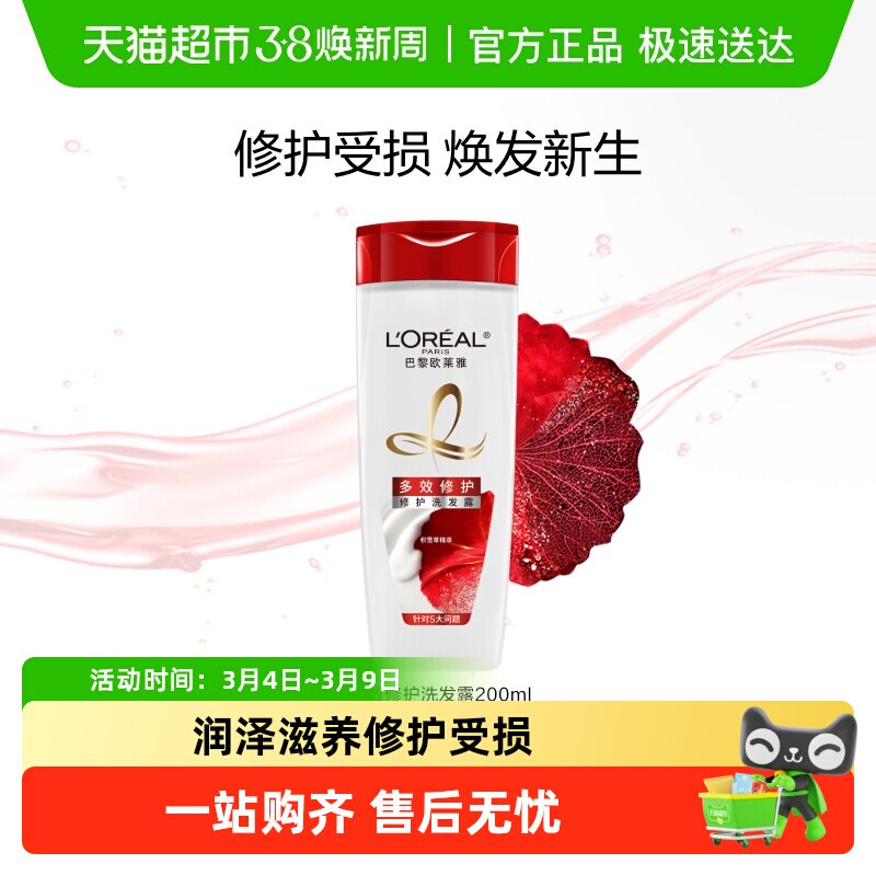 欧莱雅美发多效修护洗发水露修护毛躁染烫受损开叉干枯男女士正品