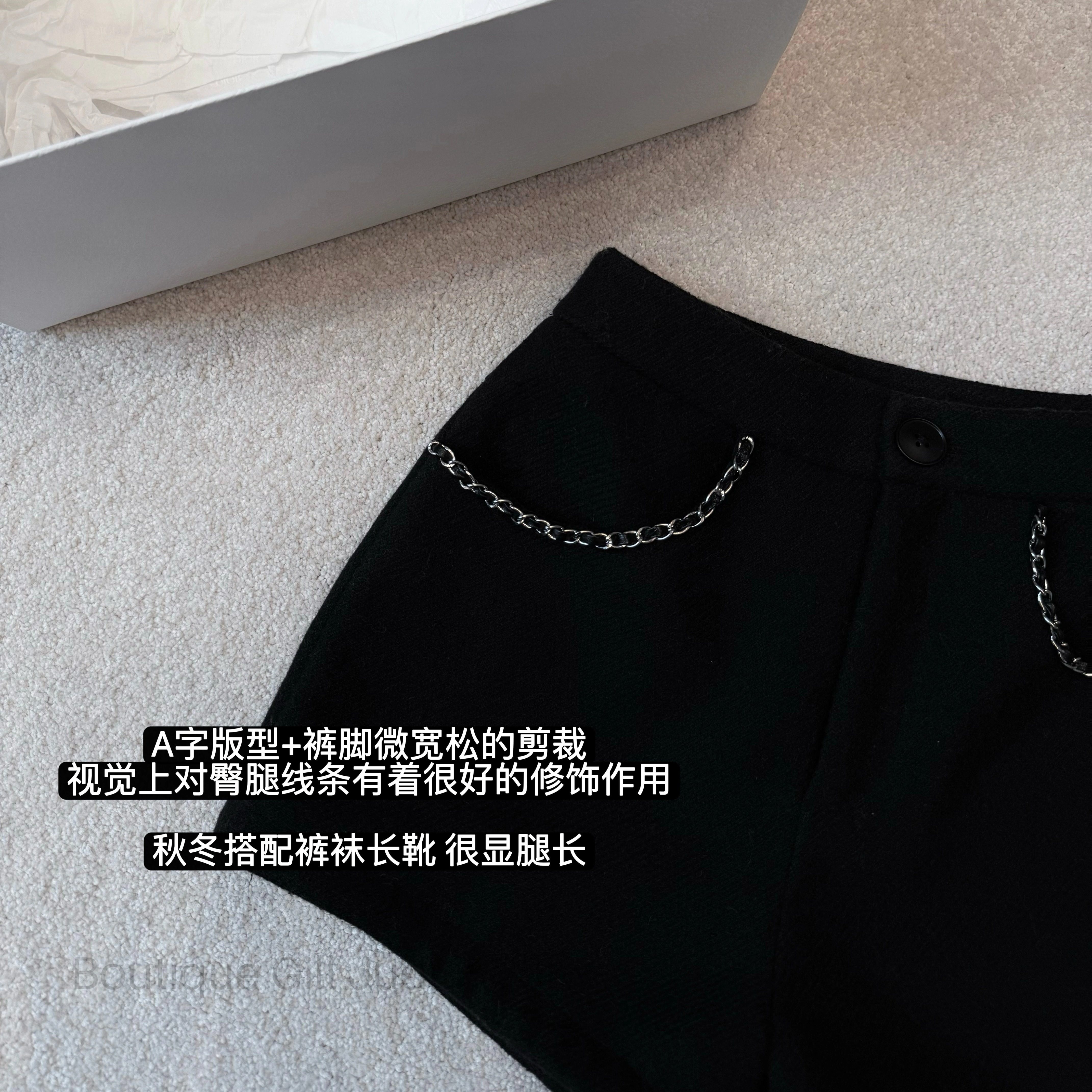 晚白2025秋冬新款时髦洋气时尚毛呢裙裤短款休闲配靴子黑色短裤女