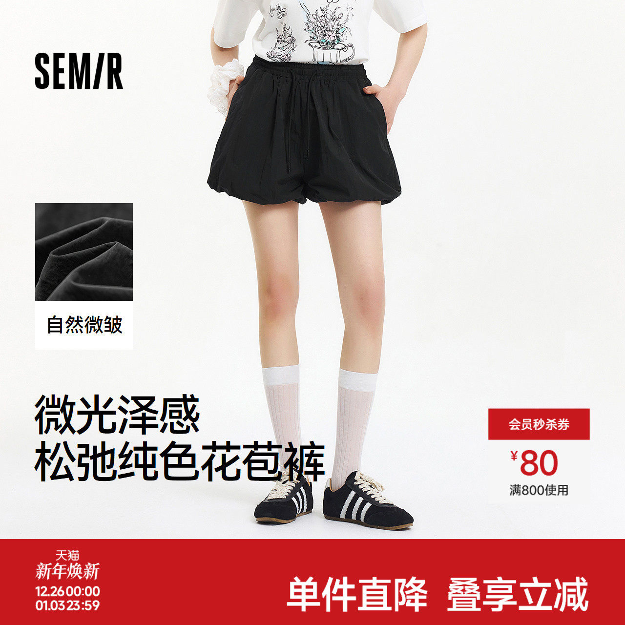 森马休闲裤女肌理黑色短裤2025新款夏季花苞裤温柔裙裤宽松裤子