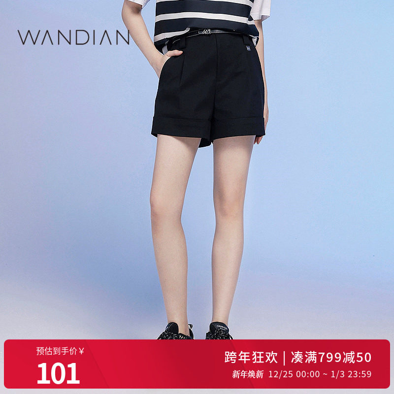 DPLAY【惠品】2025冬季新款气质休闲高腰A字黑色短裤女直筒裤子