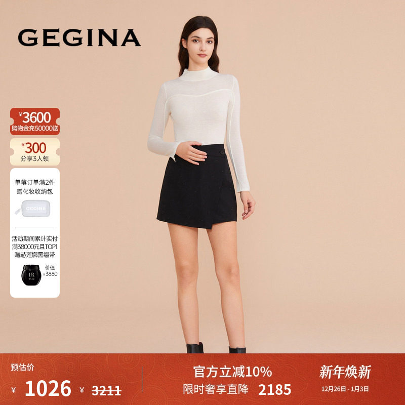 GEGINA吉吉娜女装经典黑色短裤裙高腰小个子休闲百搭短裙商场同款