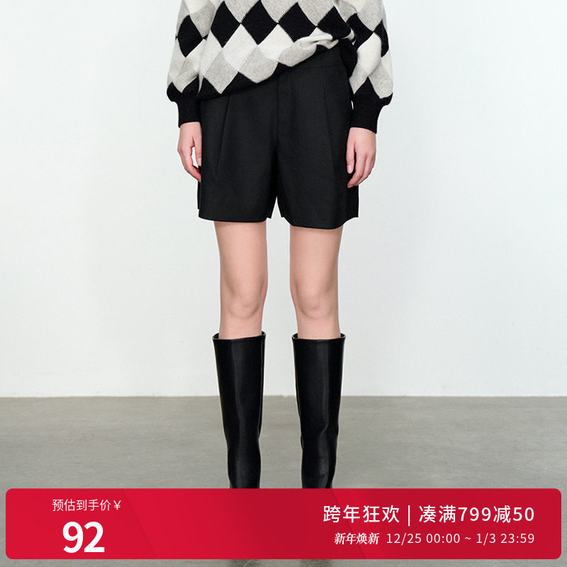 【呢感百慕大】CHICJOJO短裤女25冬新款黑色休闲裤子靴裤外穿