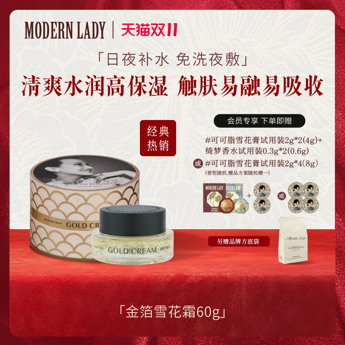 摩登红人金箔雪花膏面霜60g补水睡眠面膜免洗晚霜盈润保湿正品