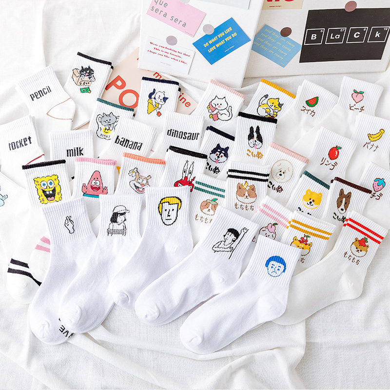 袜子女中筒袜棉袜秋冬季白色卡通可爱ins潮袜韩版ulzzang学院风