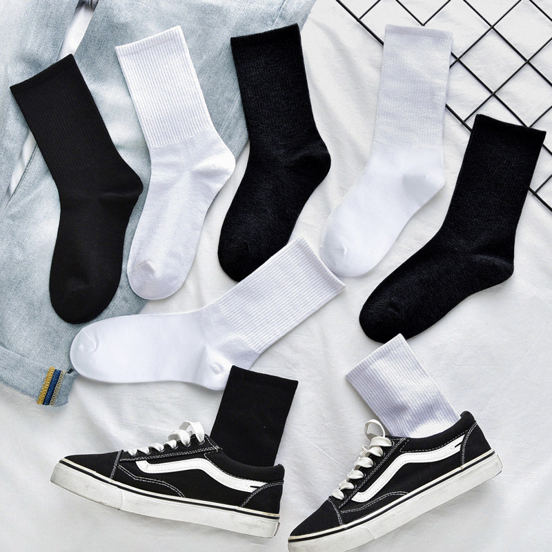 韩国INS原宿港风简约纯色黑白百搭中高筒棉袜子 ulzzang男女长袜