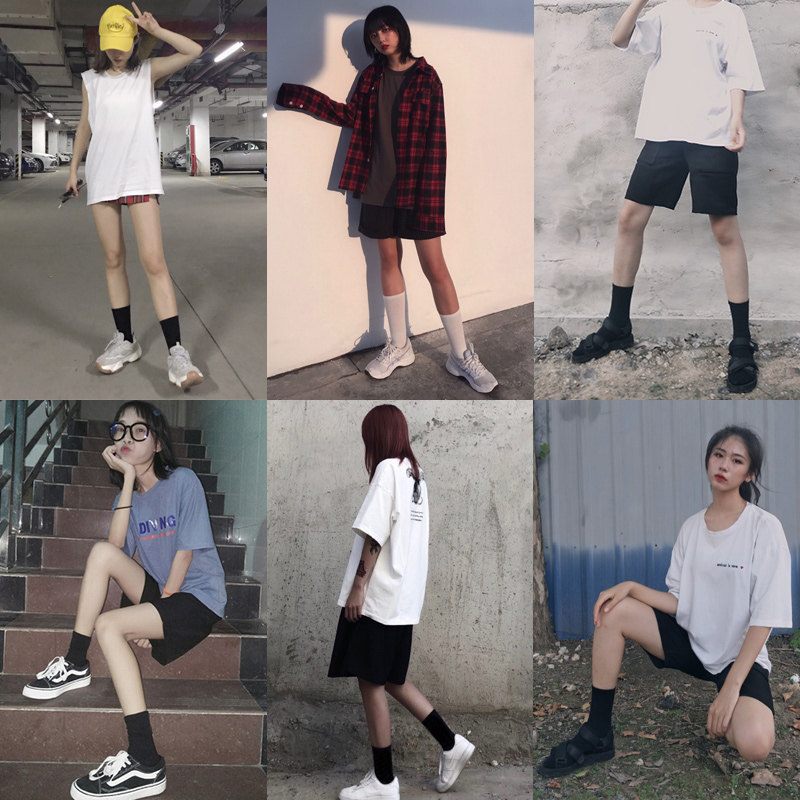 韩版ins黑白纯色中筒高帮高腰袜子ulzzang夏季薄款男女港风长袜潮