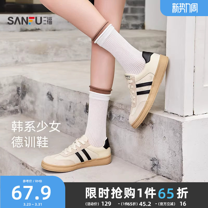三福女板鞋夏季韩系少女圆头德训鞋时尚休闲拼色女鞋842189