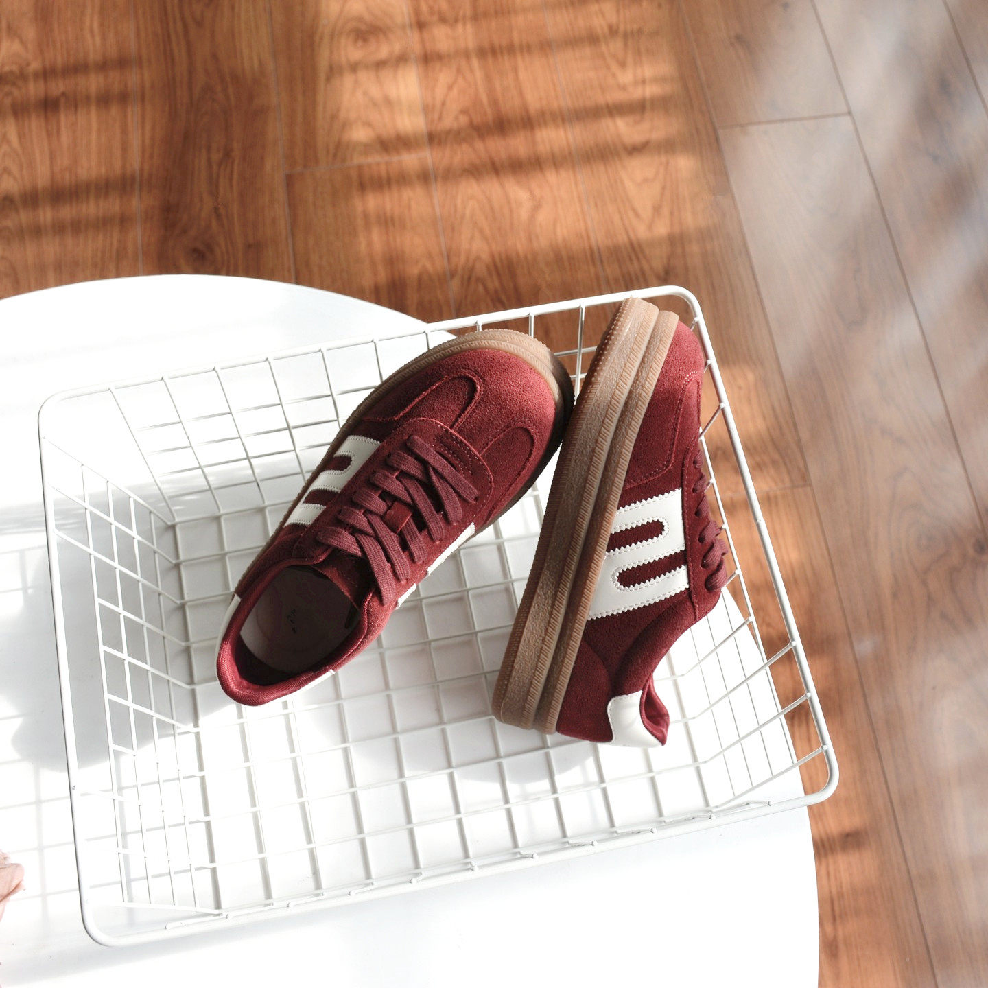 【40码】门店909 牛反绒真皮德训鞋2026春季复古厚底鞋休闲女板鞋