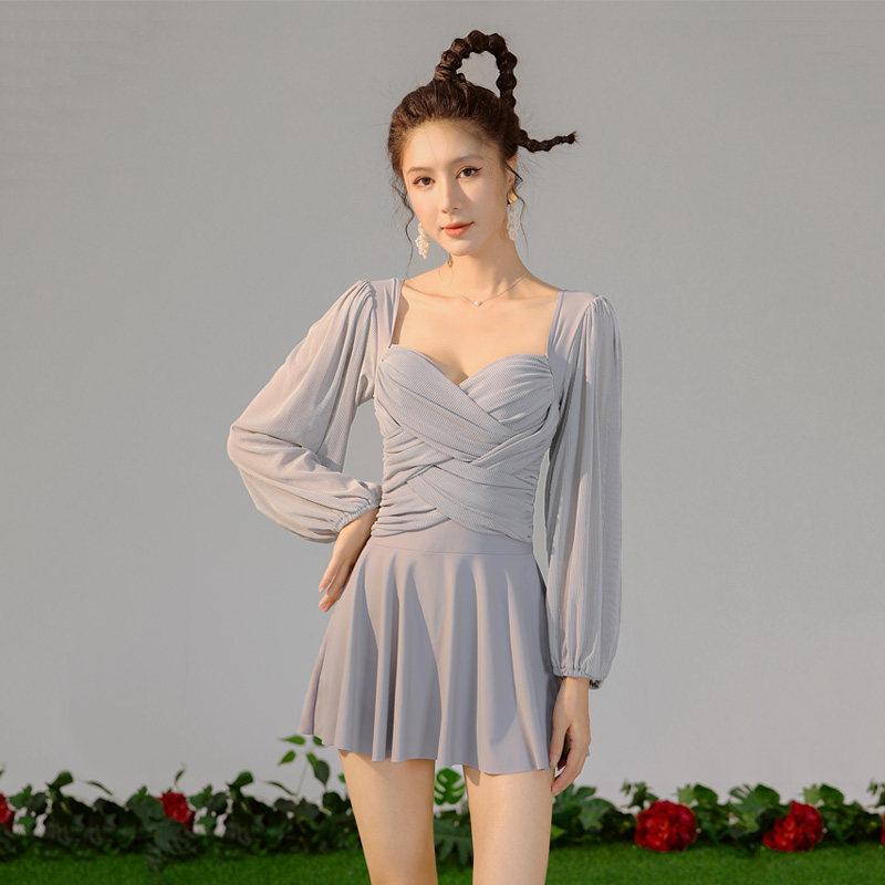 长袖大码泳衣女2026新款连体裙式遮肚显瘦高级感钢托聚拢温泉泳装