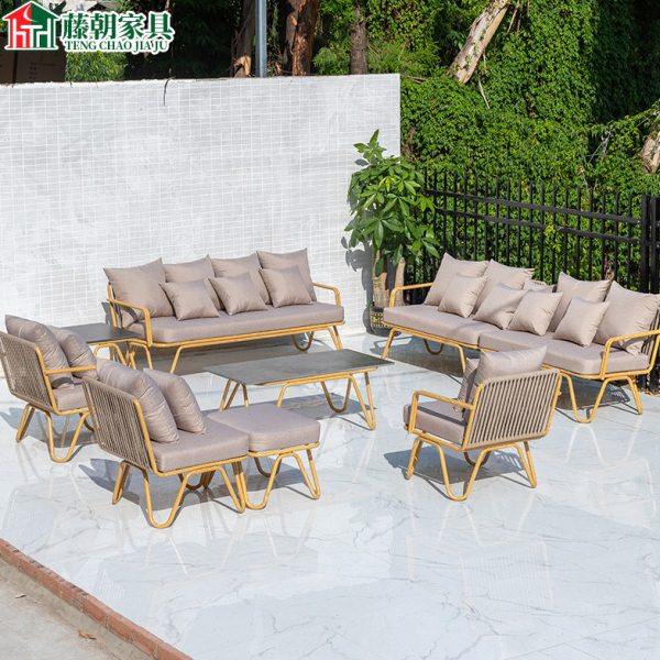 藤朝户外北欧藤编沙发庭院别墅户外仿木纹沙发小户型家具沙发组合