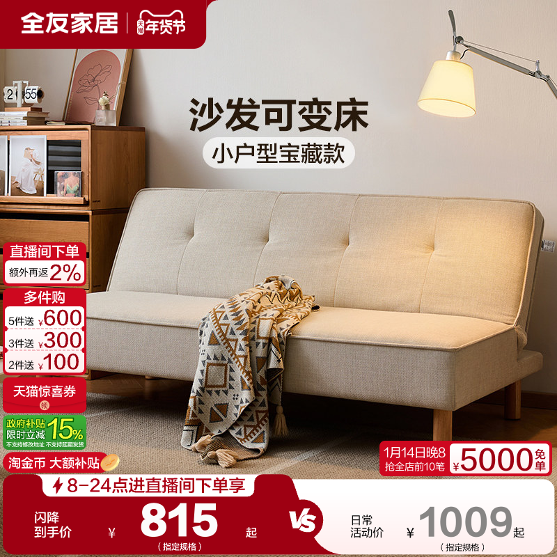 全友家居现代简约沙发床折叠两用2025新款小户型客厅实木脚家具