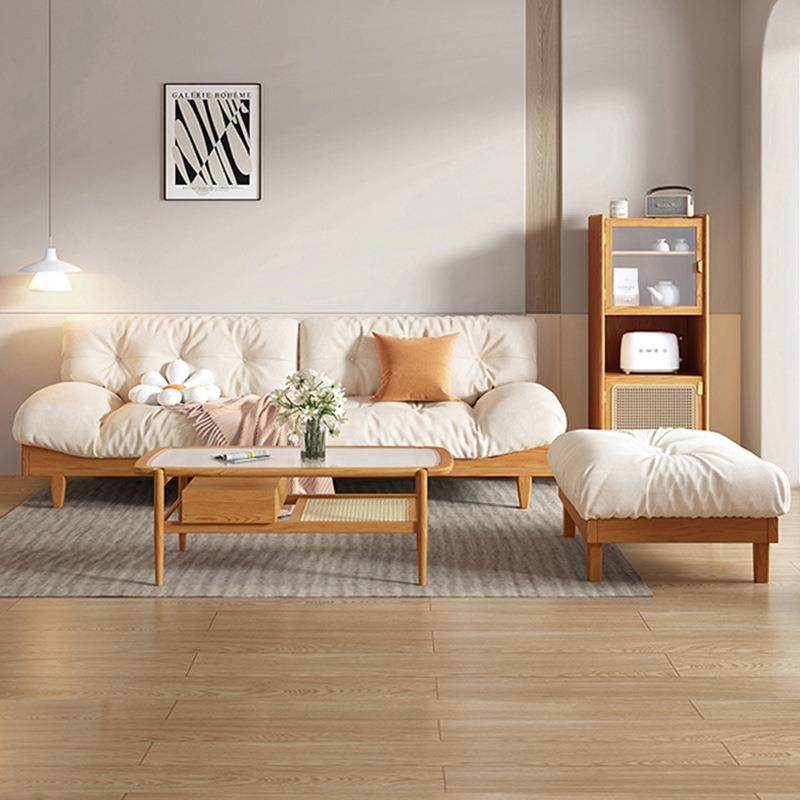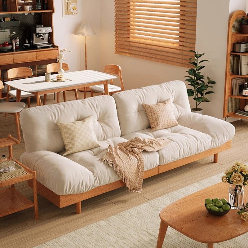 奶油风白蜡木实木沙发客厅小户型家具沙发组合三人位云朵布艺沙发