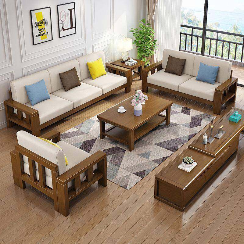 沙发客厅2024新款茶几组合现代简约出租房实木双人布艺沙发小户型