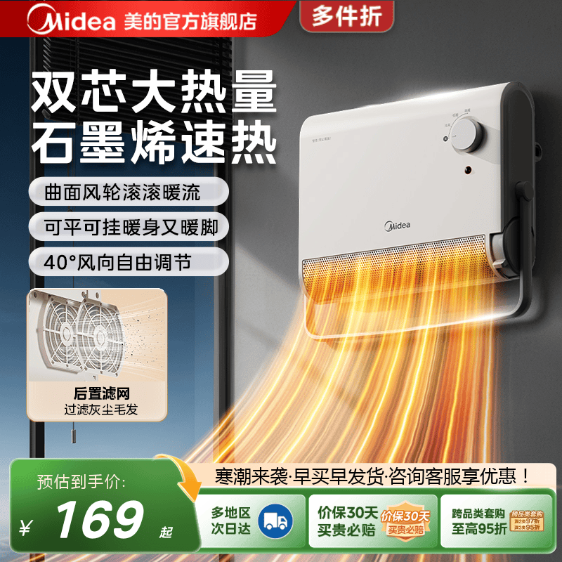 美的暖风机取暖器家用小太阳节能神器冬季石墨烯电暖气2025新款