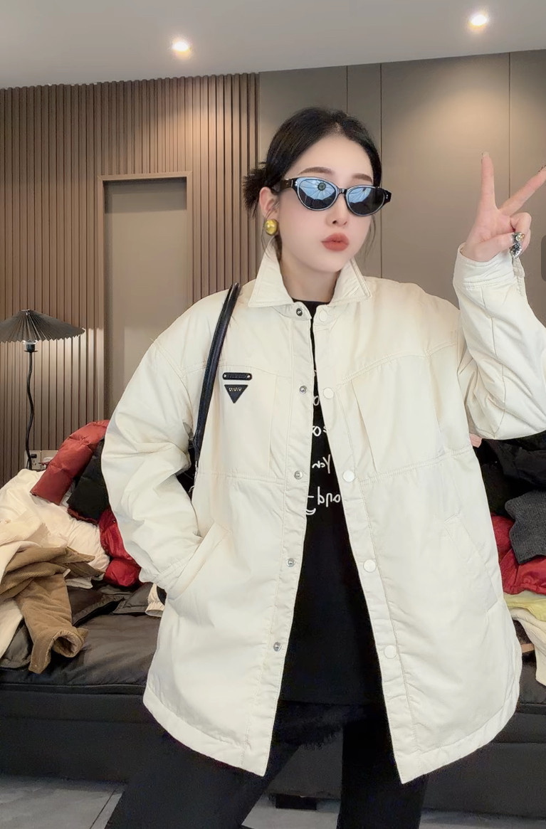 小翻领中长款衬衫棉衣外套女欧洲站2026秋冬韩版宽松休闲轻薄棉服