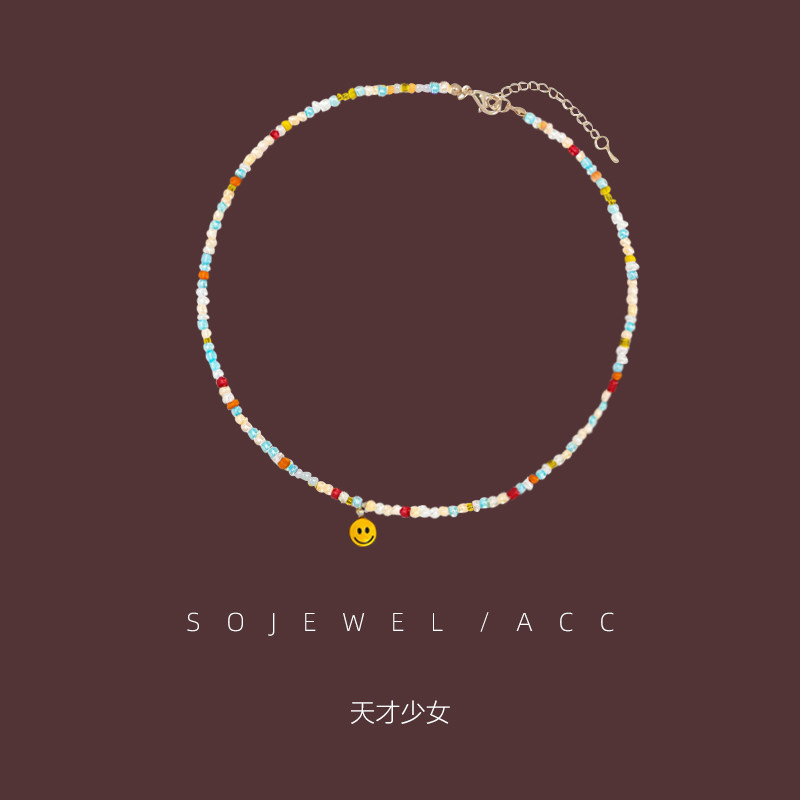 多巴胺女孩穿搭撞色串珠彩色彩虹糖果春夏笑脸项链锁骨链颈链饰品