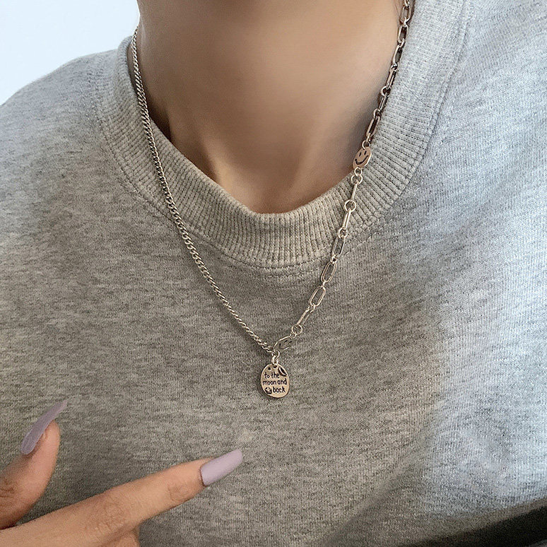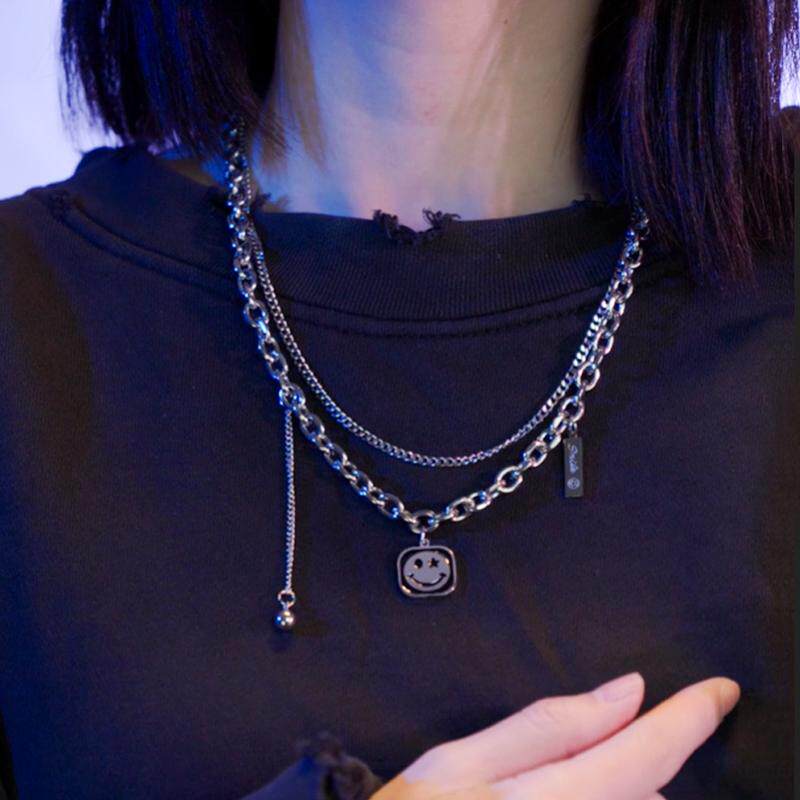 钛钢双层笑脸项链女ins潮轻奢小众设计简约百搭秋冬网红毛衣链