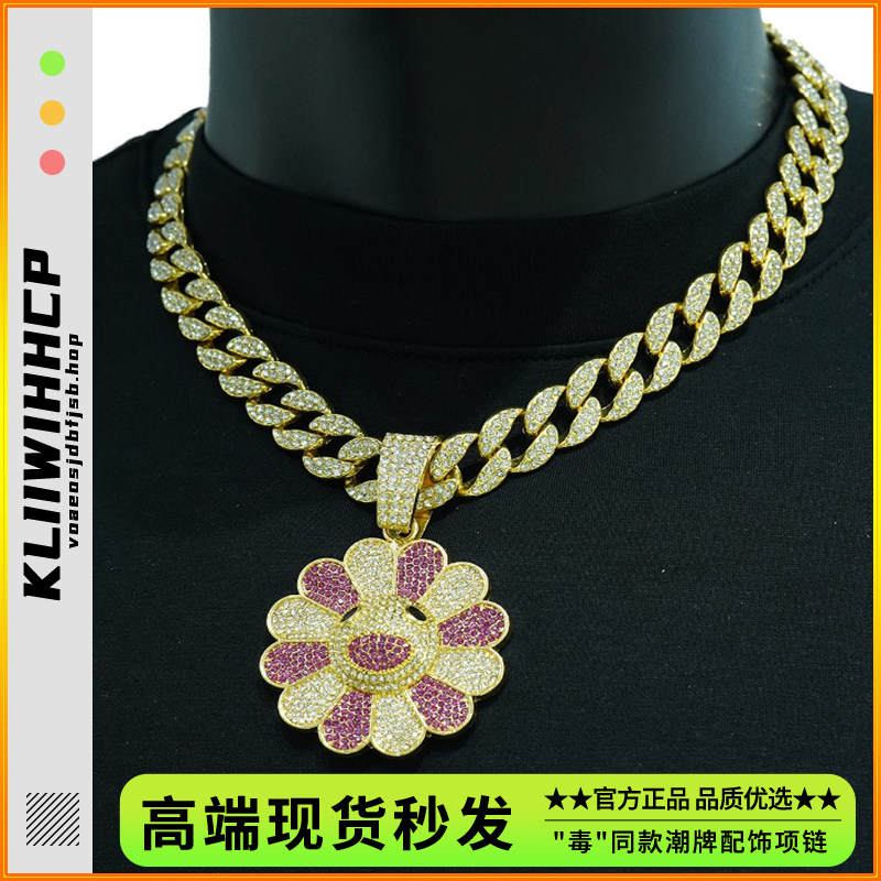 欧美项链男嘻哈太阳花吊坠潮牌个性七彩花朵笑脸项链男女时尚配饰