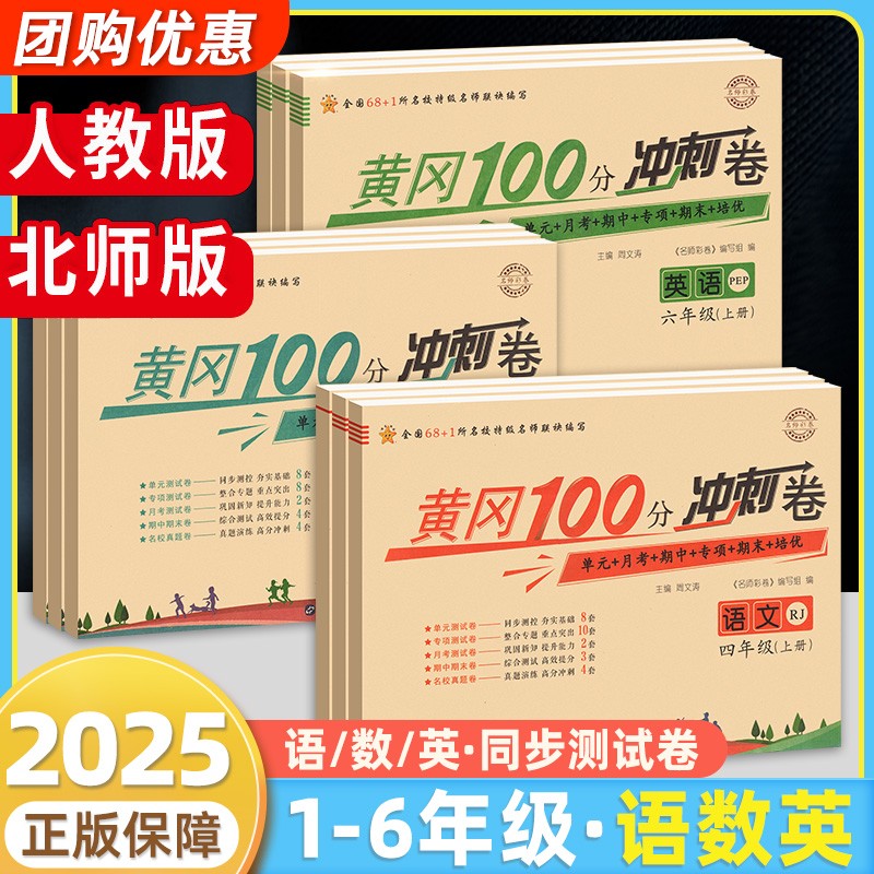 黄冈100分冲刺卷一年级二年级三年级四五年级六年级上册下册试卷测试卷全套人教版语文数学英语练习题练习册单元期末小状元达标卷