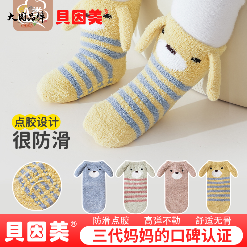 贝肽斯宝宝地板袜秋冬加厚儿童防滑袜隔凉室内婴幼儿中筒学步袜子