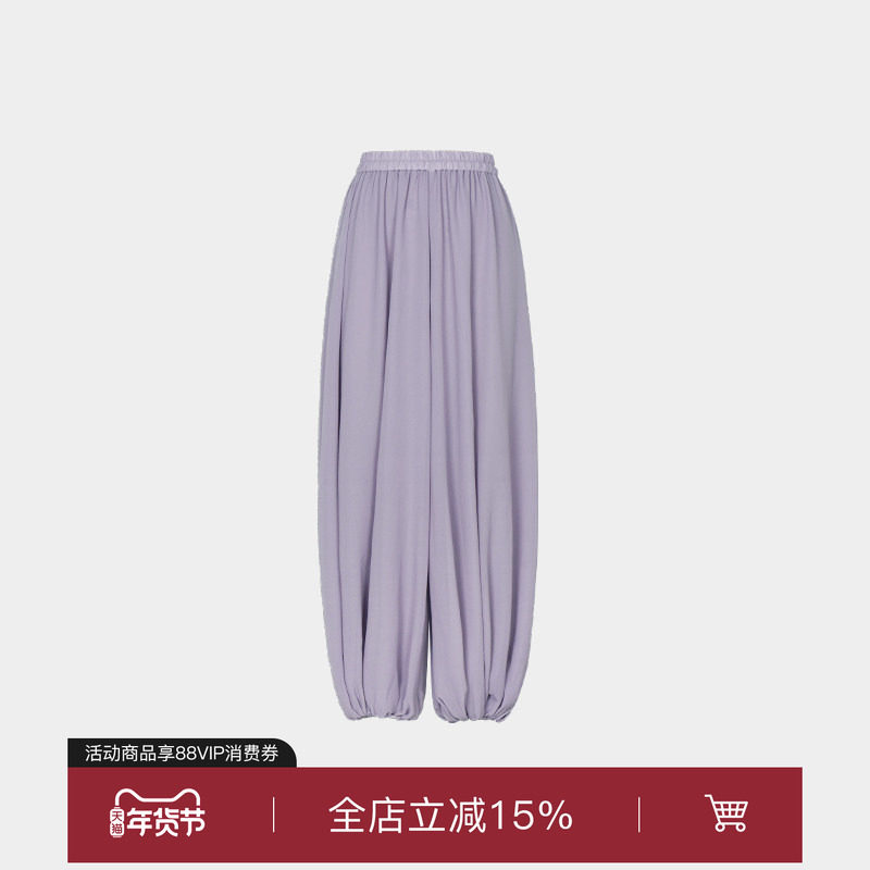 superr 新款雪纺中腰阔腿长裤女夏灯笼裤慵懒复古原创简约修身