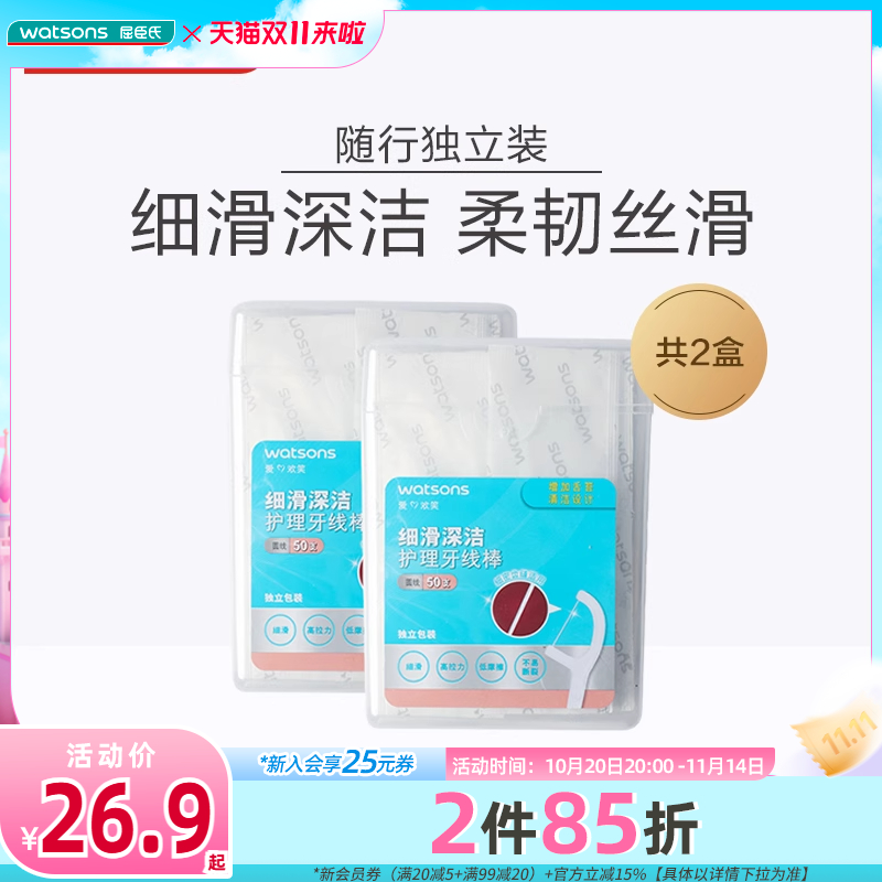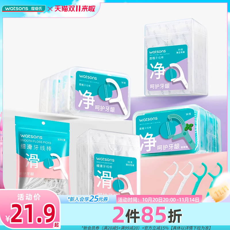 屈臣氏细滑深洁护理牙线棒50支(独立包装)卫生便携单线柔软耐磨
