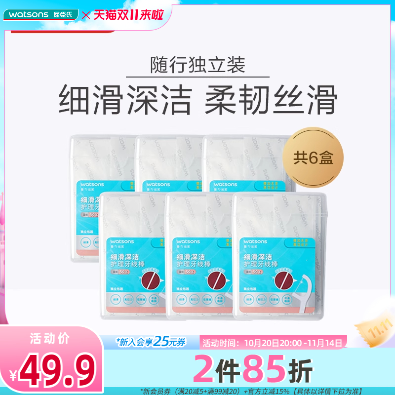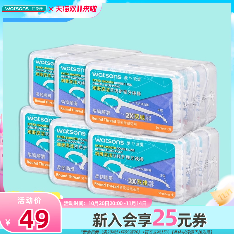 屈臣氏细滑深洁双线护理牙线棒50支X6牙签家庭装不易断裂新旧随机