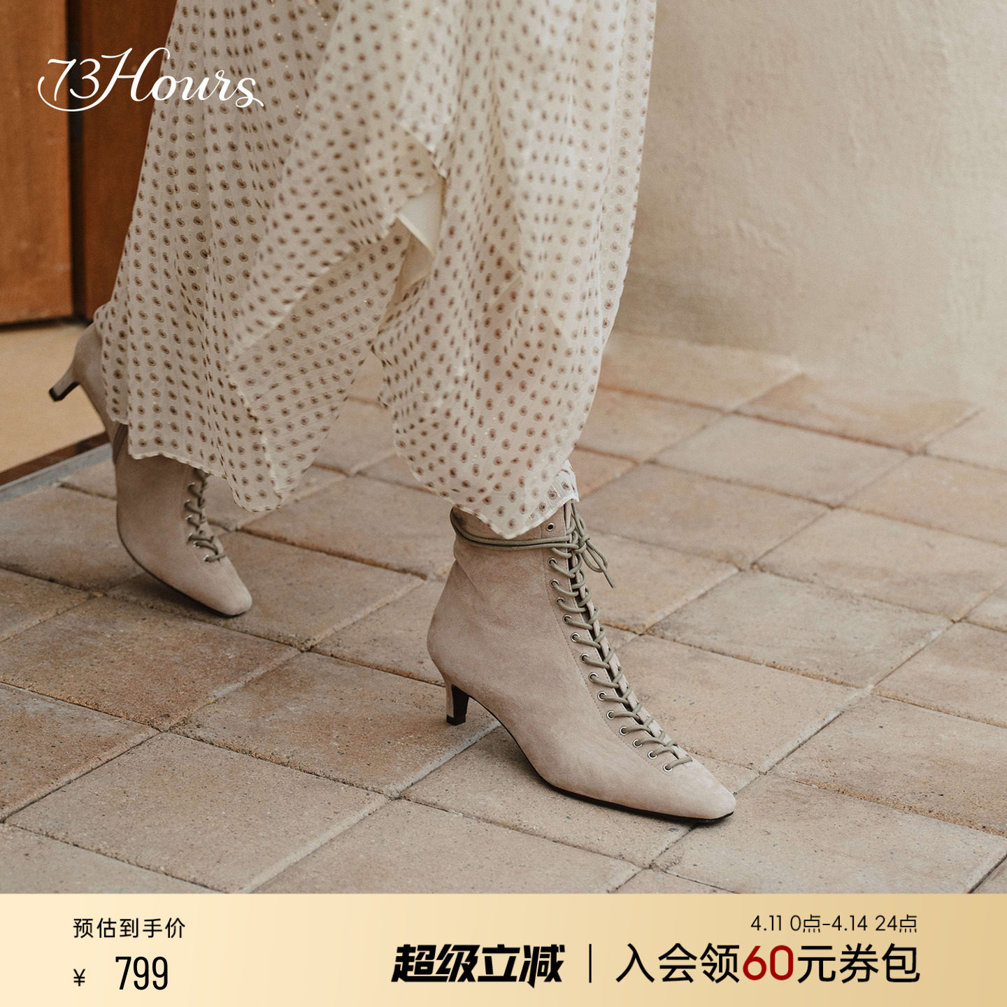 73hours女鞋混搭美学冬新款尖头短靴女波嬉风踝靴高跟时装靴