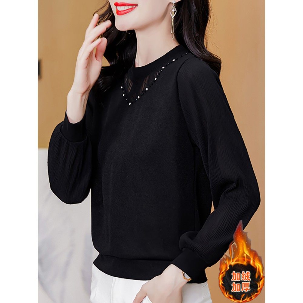 加绒加厚黑色蕾丝打底衫女秋冬2024新款气质内搭洋气小衫长袖上衣