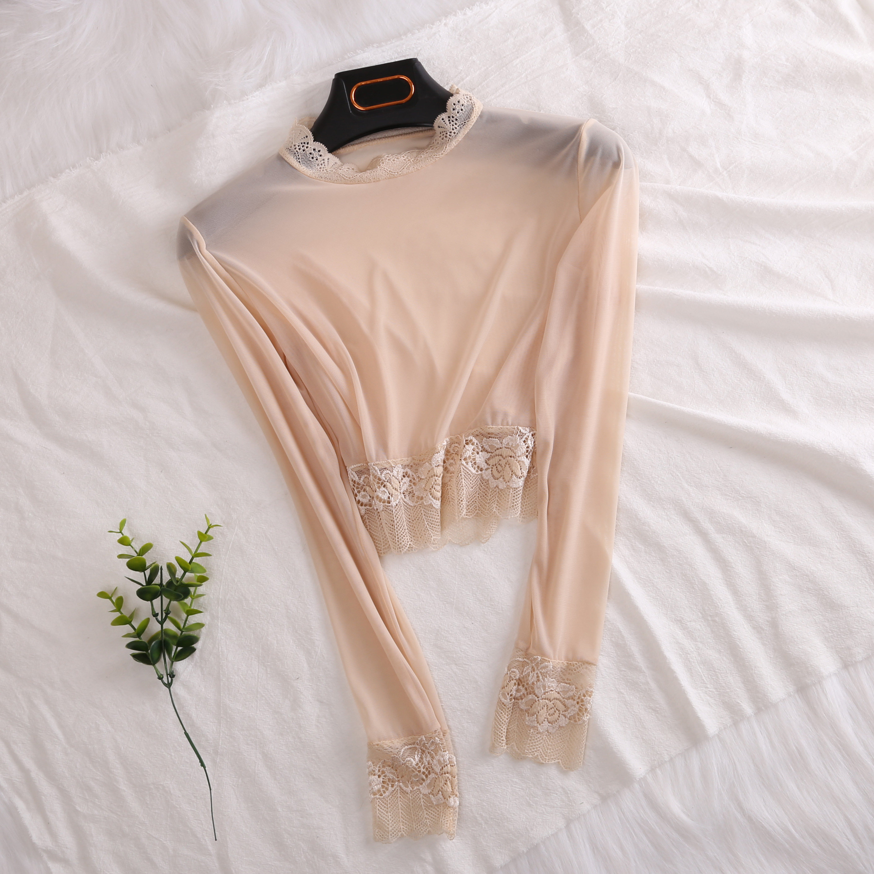 黑色打底衫女高端高级感早秋罩衫薄纱网纱上衣蕾丝内搭长袖t透视
