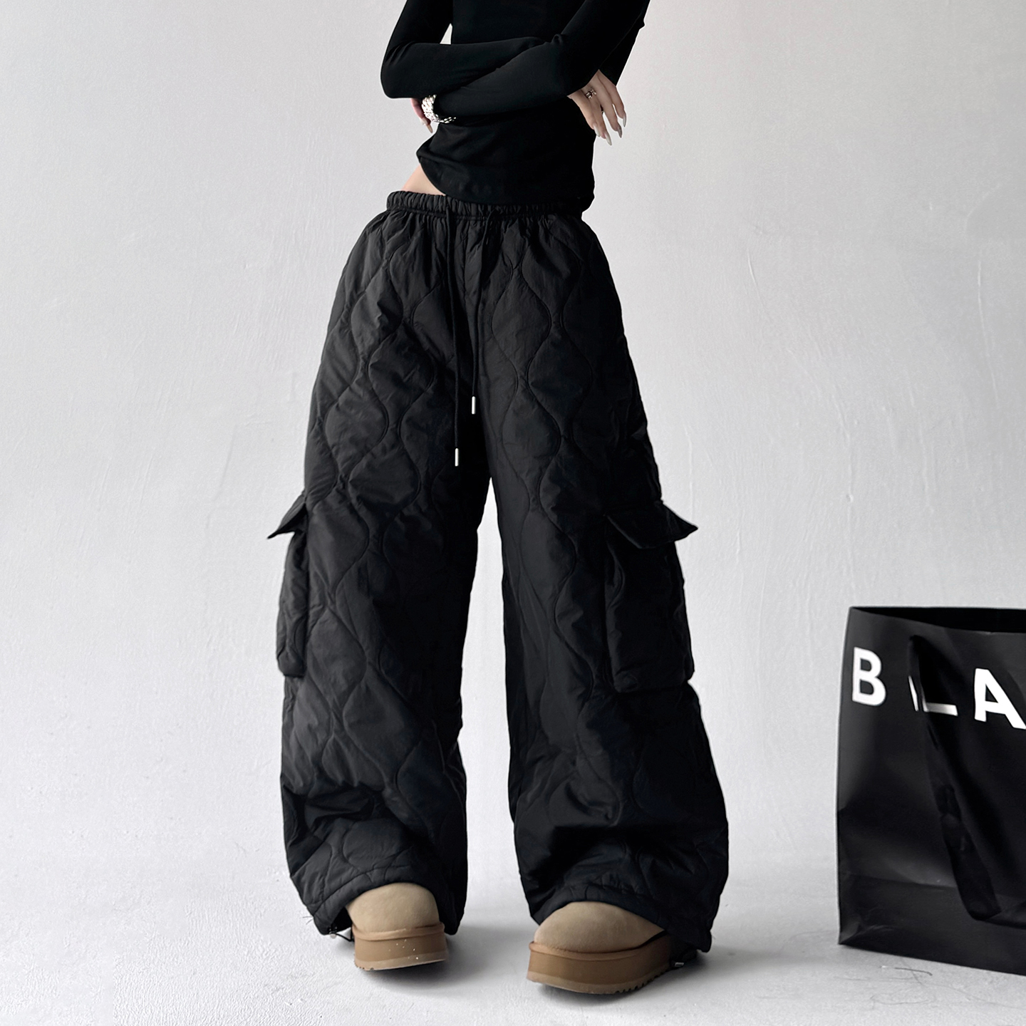 2025冬季新款户外抗寒保暖棉裤女黑色复古加厚工装夹棉高个休闲裤